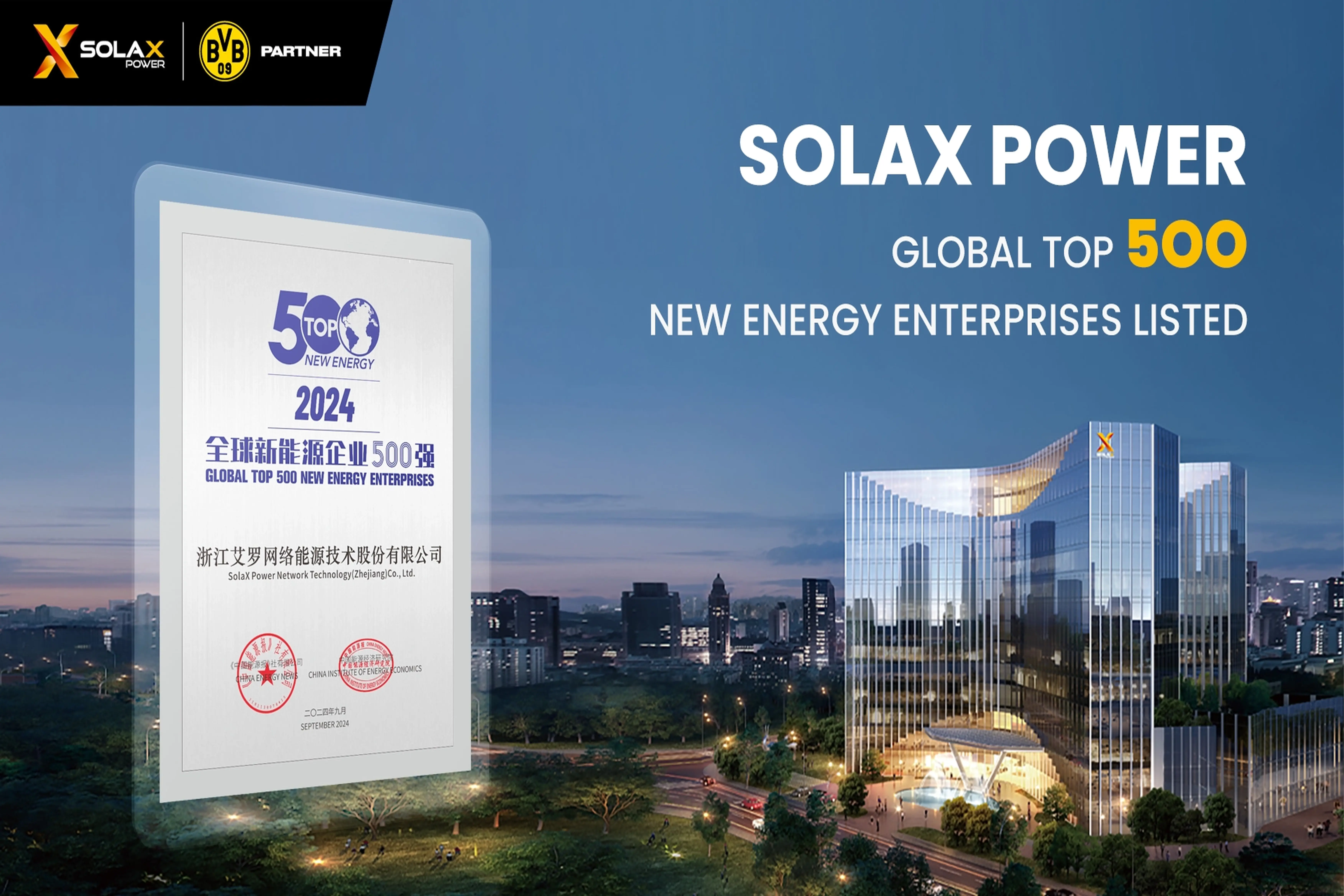 SolaX Power Listed Among Global Top 500 New Energy Enterprises -